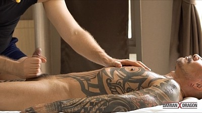 Alex’s hands don’t just massage—they own. Every glide of oil-down skin mirrors the slick drag of my swollen, uncut cock beneath his palm—foreskin peeling back from my pulsing head, then sliding slow over that tender crown again… and again. My muscles loosen. My cock rigid, dripping with the same slick heat he works into my back. The connection isn't just energy—it’s hunger. His thumbs dig into my shoulders, and my hips jerk. A groan spills from my lips as his fingers trail lower… Is that his knee pressing between my thighs? The bodywork blurs into something deeper. His hand finally wraps around my thick, leaking cock. "Breathe," he murmurs Every stroke of his palm shoves my foreskin taut, then rolls it back, milking my leaking precum. The energy he promised isn’t flowing… it’s erupting.