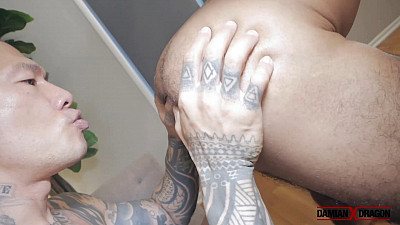 Damian’s career started in front of the camera in his early twenties. As he got more heavily tattooed, he also became more heavily invested in the BDSM scene, and his work became fetish-oriented. Being an exhibitionist by nature, there was a natural transition to work as an adult performer.
